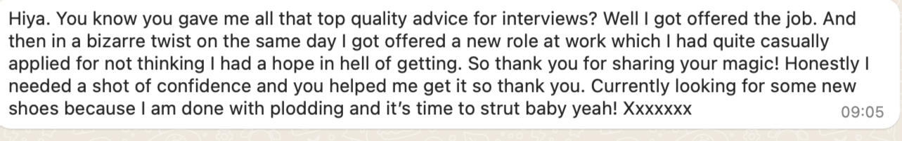 Sian nailed her interview AND called in an out of the blue internal promotion all on the same day after just one clarity session.
